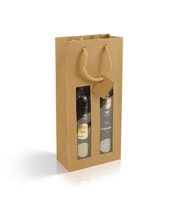 Papierová taška s okienkom - hnedá (na 2 fľaše)